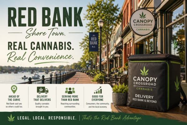 The in-store experience at Red Bank dispensaries is strong, but delivery is where the growth is heading. Canopy Crossroad, one of the borough’s established dispensaries, is rolling out cannabis delivery in Red Bank that will serve customers across the area. For a women-owned, community-focused dispensary, delivery is a natural extension — it meets customers where they are rather than requiring them to come to you.